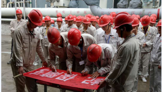 宣誓活動(dòng)結(jié)束后,副總經(jīng)理張建東和尚繼榮率先在印有“安全生產(chǎn),生命至上”的條幅上簽名。隨后,各科室裝置員工按照先后順序依次簽名。