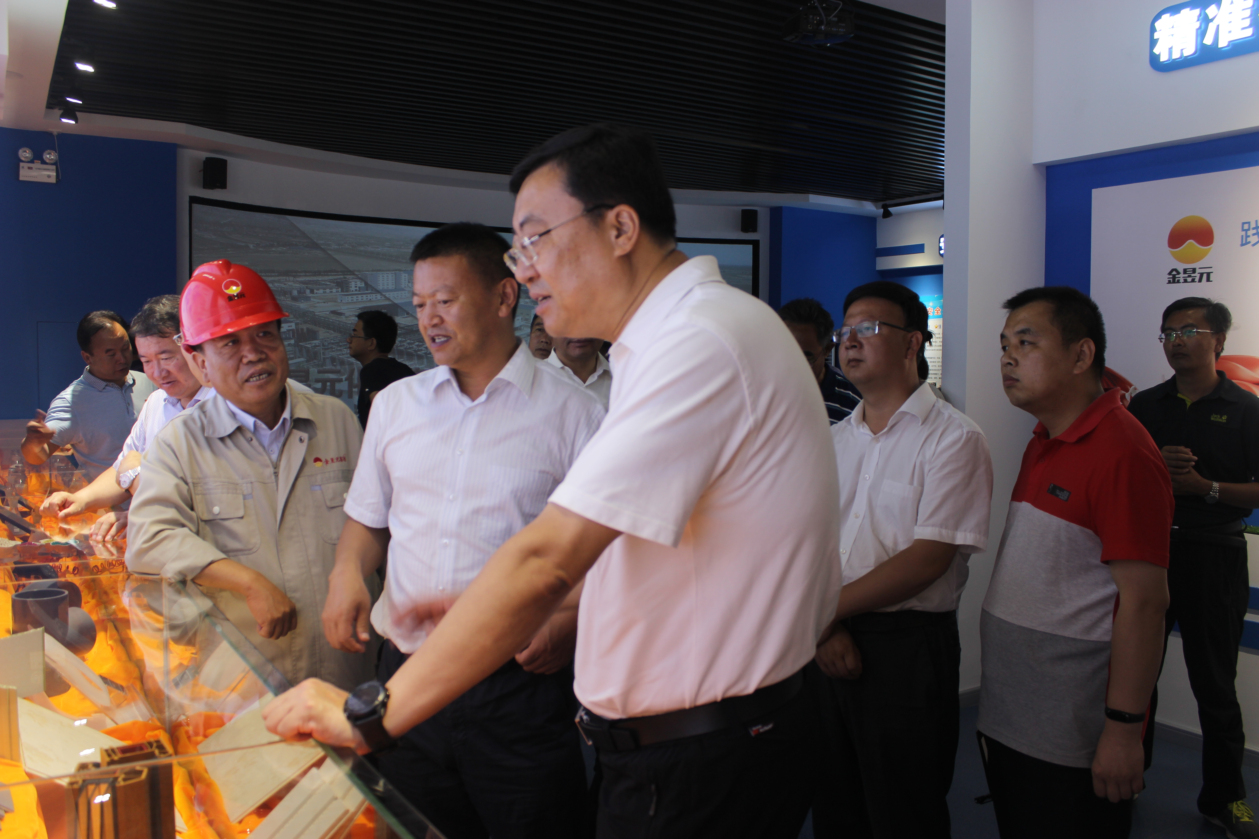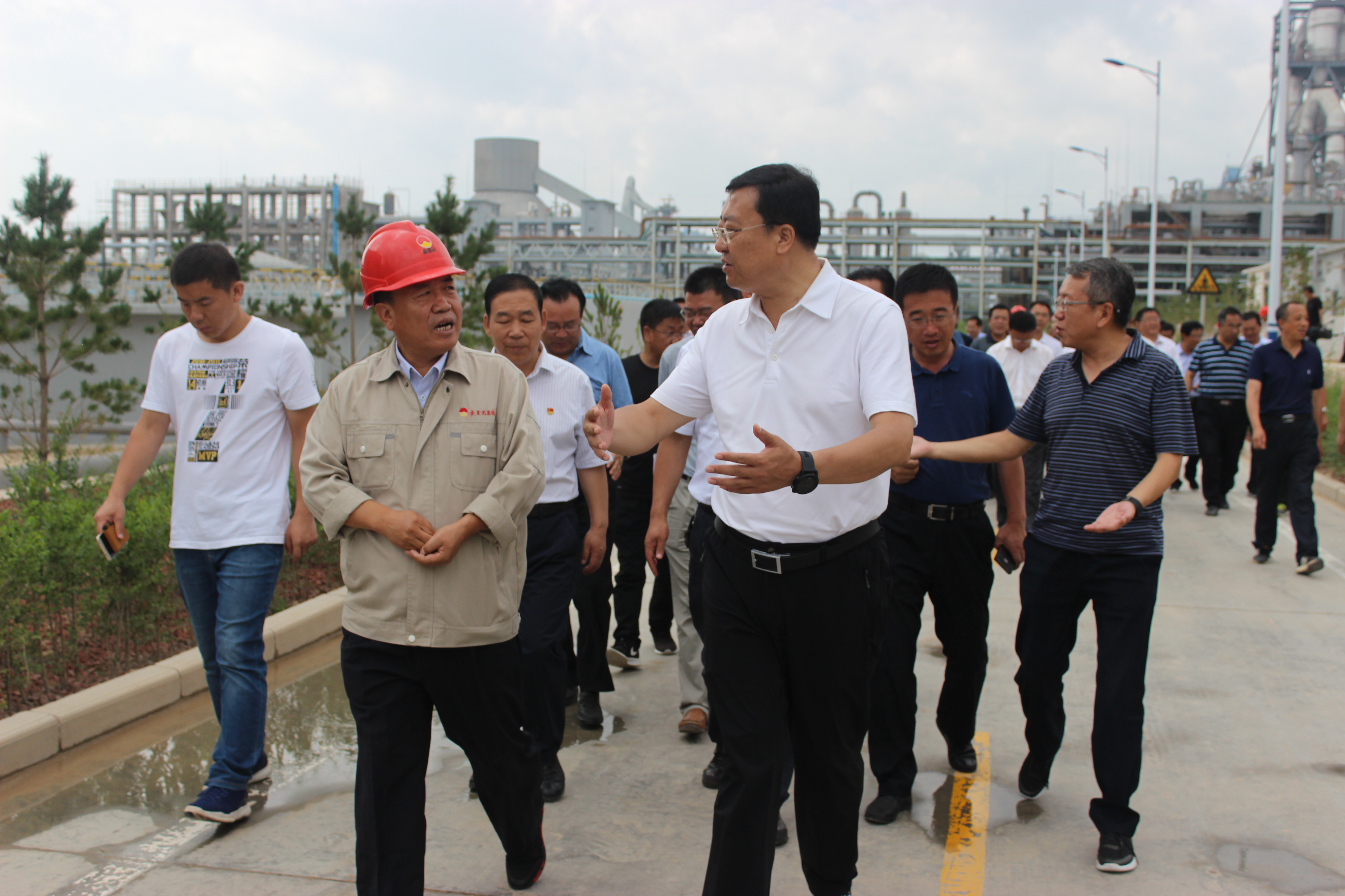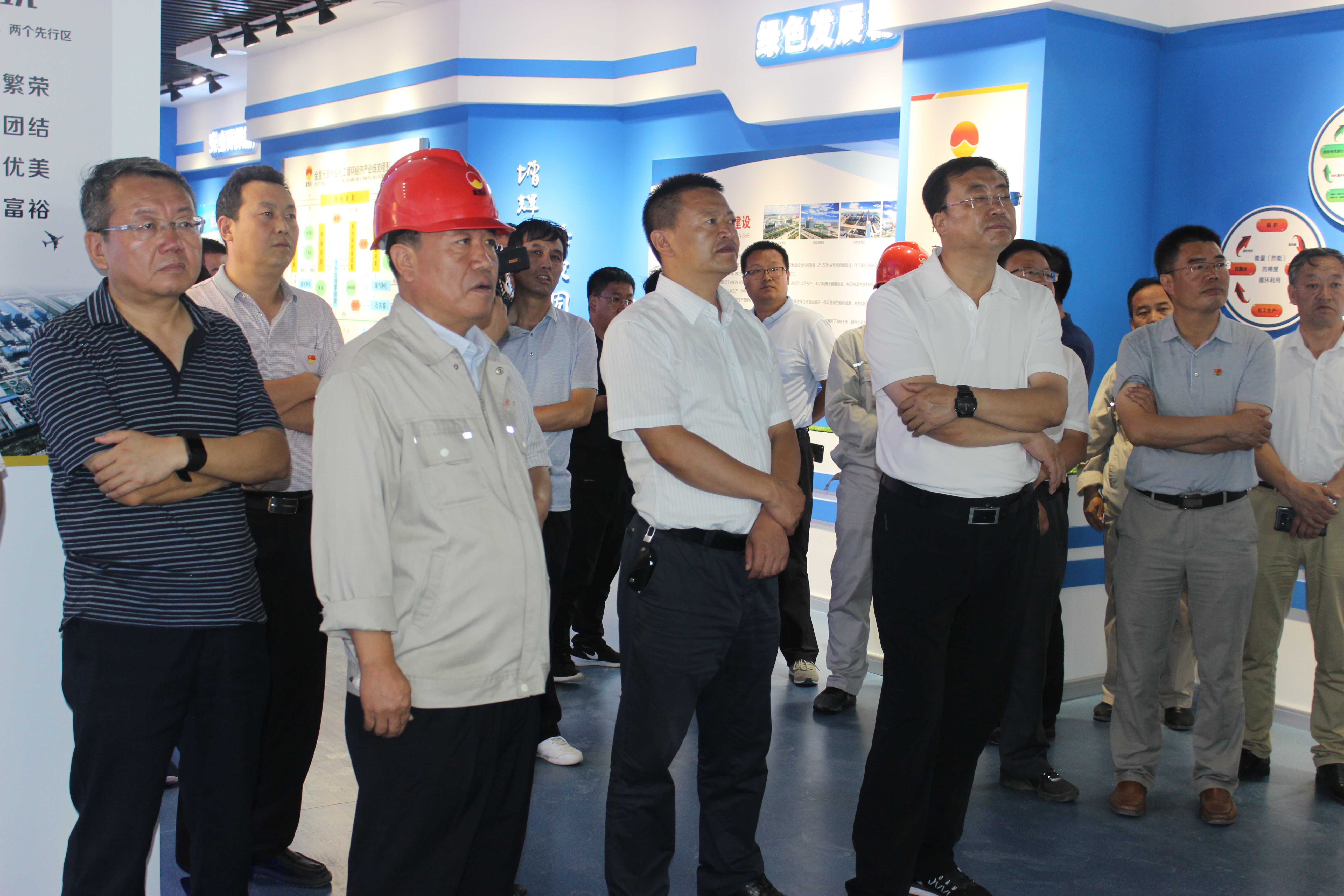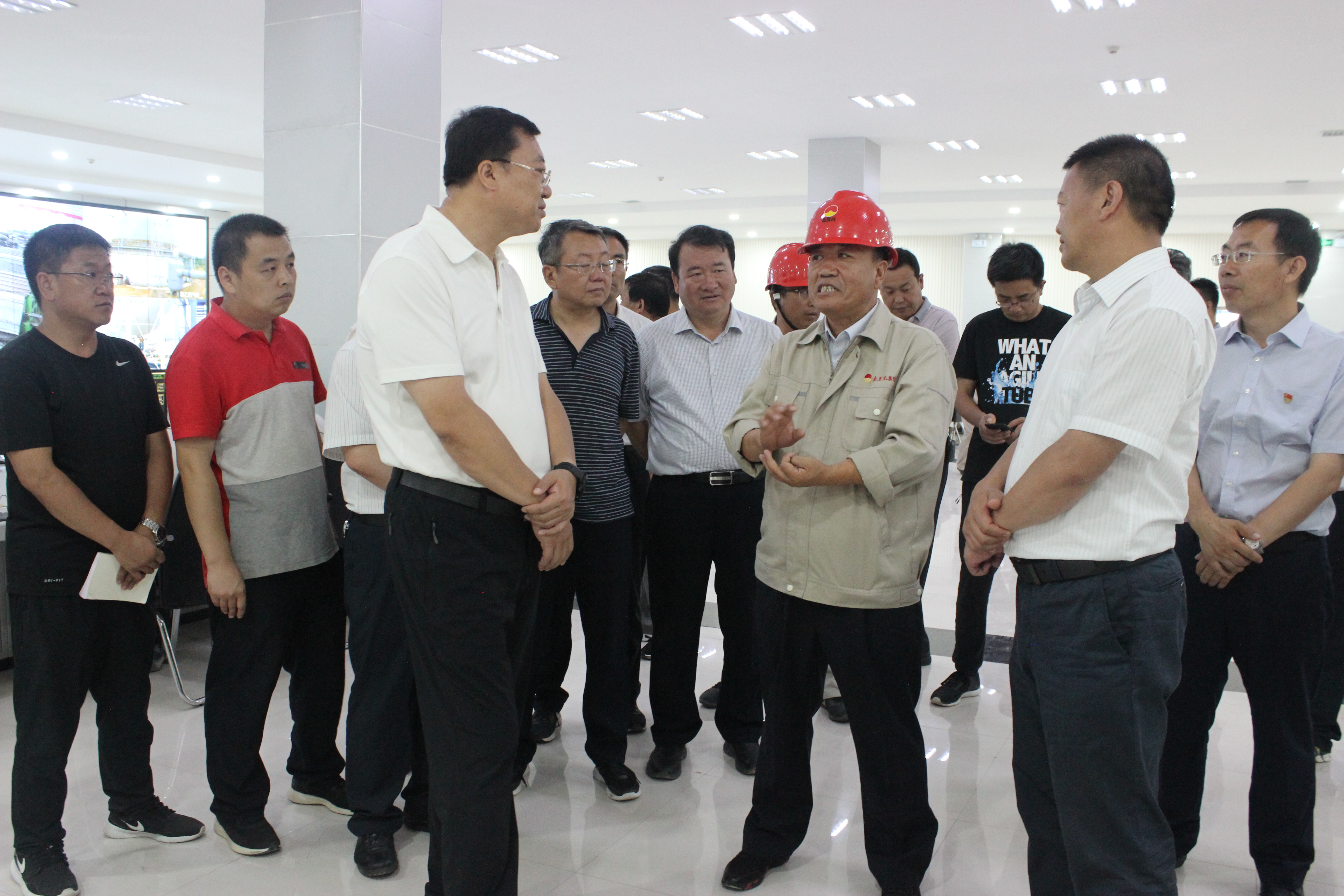 張柱書記、馬漢成市長一行先后到氫氣處理南側小廣場、公司展廳進行觀摩。副董事長陳文泓首先表達了對張柱書記、馬漢成市長一行的歡迎,并就公司目前生產經營、項目建設等方面情況做了匯報。