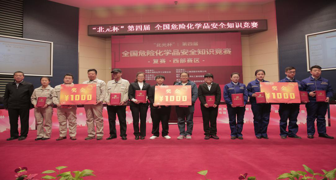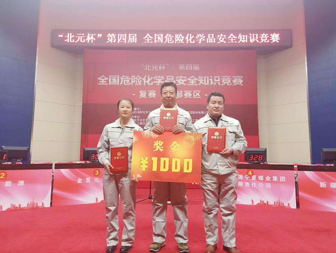 2018年12月7日,由中國石油和化學工業聯合會指導,中國化學品安全協會、中國化工報社主辦,陜西北元化工集團股份有限公司冠名,鄂爾多斯大路煤化工基地管委會協辦,國家能源寧夏煤業集團有限責任公司承辦的“北元杯”第四屆全國危險化學品安全知識競賽西部區復賽在寧夏銀川寧東能源基地舉行。集團公司受邀參加此次比賽,公司領導高度重視,經過選拔,挑選出安全知識豐富、生產經驗較強、業務能力突出的3名員工組成代表隊及20多人組成的啦啦隊參加比賽,并獲得了第三名好成績。