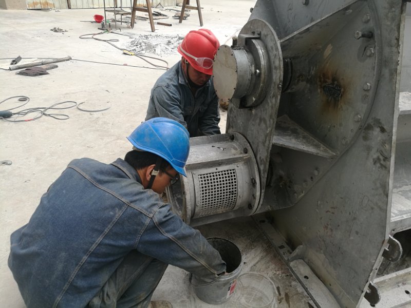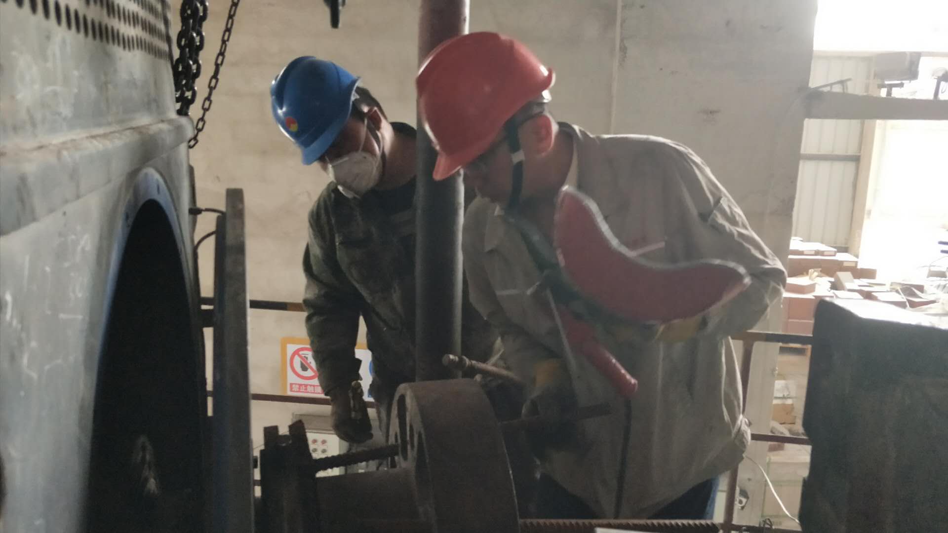 5月27日,檢修人員頂著大風降溫,加班加點完成烘干破主電機和生料磨輥壓機側擋板檢修。