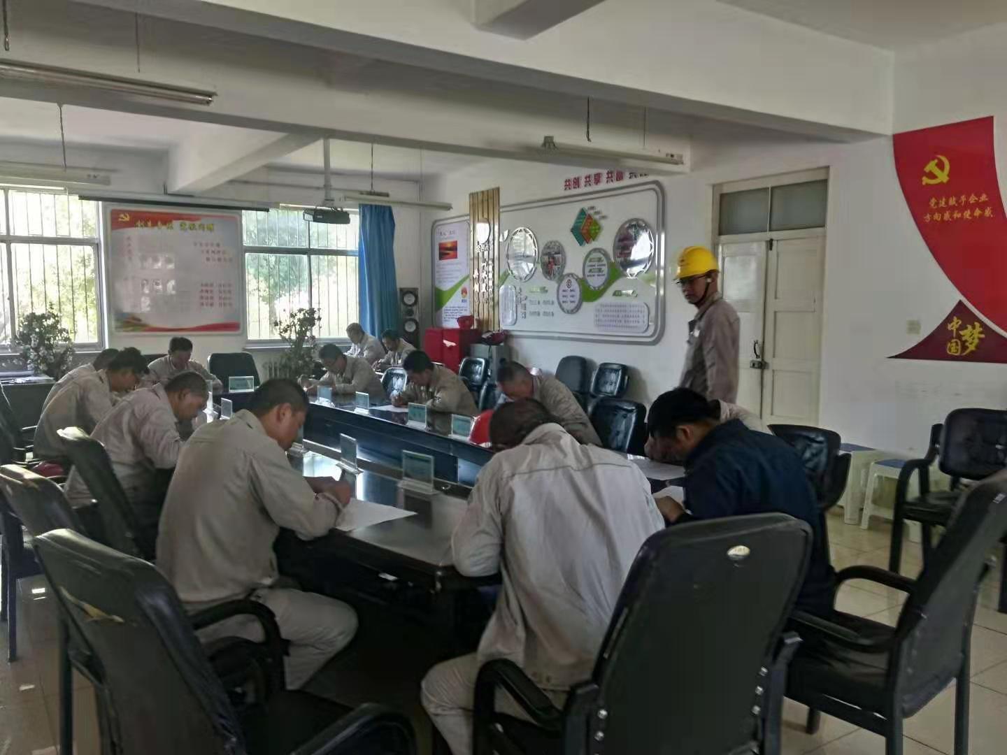 考試分為兩場進行,考場分別設在公司餐廳及會議室,此次考試以近期培訓的《危害生產安全刑事案件兩高司法解釋》、《危險性作業管理要求》、《電石、水泥系統較大風險作業安全管控措施》及管理人員應知應會知識為主,考試分為A、B卷組織進行,現場為避免抄襲現象,組織將手機集中保管,分離對坐。