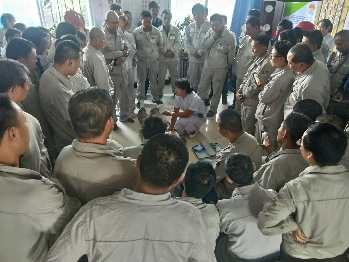 2019年9月3日下午16:00分資源再生公司邀請青銅峽市醫(yī)院急救科朱醫(yī)師、李護士長到公司現(xiàn)場模擬心肺復(fù)蘇急救演練操作培訓(xùn),各生產(chǎn)裝置班組長以上人員、科室各專業(yè)60余人參加了培訓(xùn)。