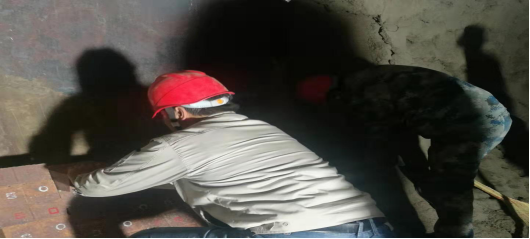 在其他設備檢維修現場,工人們依然具備這種“責任心”,如生料裝置接力風機維修現場,檢維修工人通過測振儀更換“主軸”。