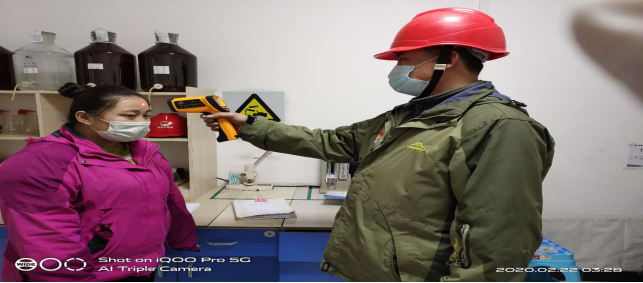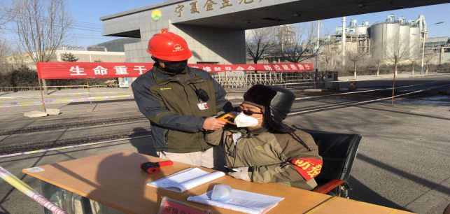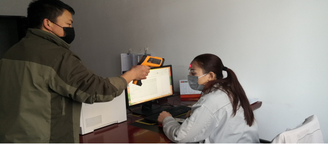 在園區南門,今日截止下午17時整,他們檢測、消毒、登記車輛78輛,人員100人,車輛正常,人員體溫均在正常范圍。