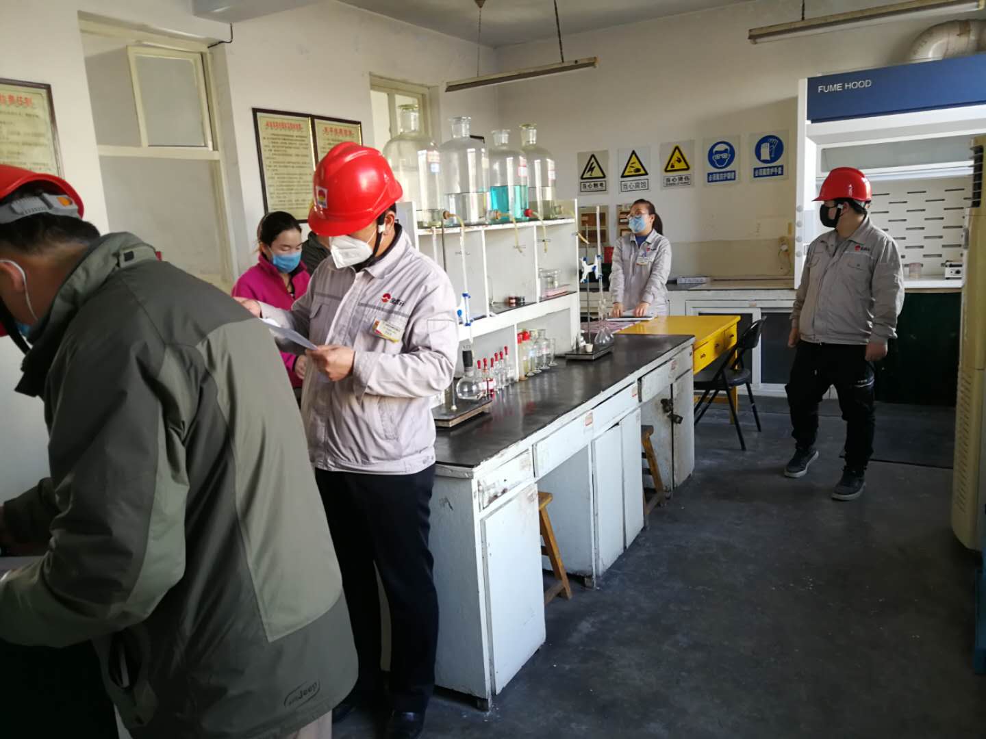 每到一個裝置,檢查人員都會詳細的詢問人員測溫情況以及辦公用品的消毒情況。王總強調:“一定要嚴格執行各項防疫規定,杜絕疫情蔓延途徑,保障員工安全”。從南大門到原料裝置,從電石爐到化驗室,從成品裝置到生料裝置,檢查人員的腳步踏遍了資源再生公司的每一個值班室和辦公室,真正無死角的對疫情防控工作做了檢查。