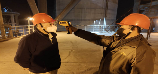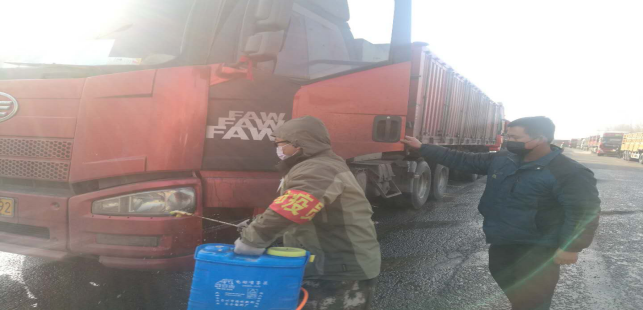 在園區南門,今日截止下午17時整,他們檢測、消毒、登記車輛92(其中水泥19車輛,熟料9車輛,2輛氧氣配送車),人員98人信息,體溫均在正常范圍,另外隨行26人體溫均在正常范圍。