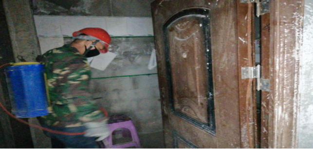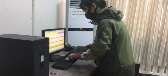 在崗位辦公室消毒。