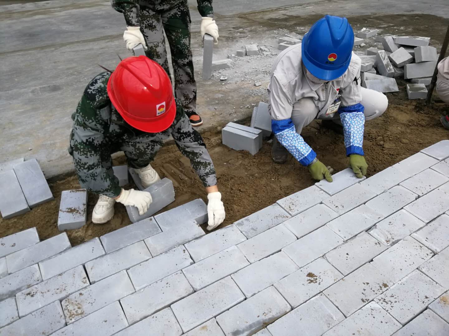 3月23日早上8:30分,資源再生公司組織所有日勤人員到成品裝置東側綠化帶內勞動。說是勞動,其實就是用青磚將綠化帶旁邊多余的土地鋪成平整的小路。雖然大家不是專業的泥瓦匠,也沒有專業的工具,但大家想方設法將青磚鋪的平整而又美麗。說說笑笑中手下的工作一點兒也沒有落下。時間在忙碌中悄悄溜走,大約一個小時,原來的沙土地變成了平整的磚地,遠遠看去,青磚鋪成的小路干凈而又整齊。