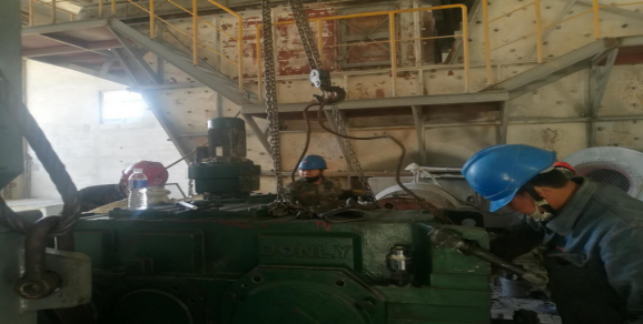 4)烘干破減速機齒輪及軸承檢查,更換油封,聯軸器找正(未完成);