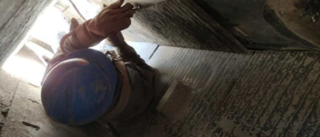 7)回轉窯輪帶擋圈及墊板補焊加固,檢查大齒圈齒面磨損并對齒面打磨修復(未完成);