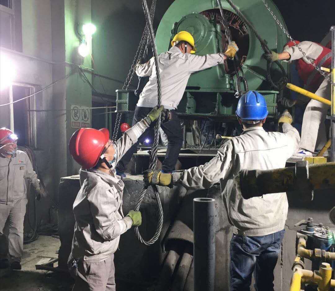 四月底的天氣,白天溫暖如春,晚上卻冷的像冬天。就是這樣的天氣,在資源再生公司一號水泥磨電機安裝現場,卻如火如荼的上演著熱火朝天的電機安裝場面。總經理、副經理、科長、專業技術管理人員、各裝置維修工等等,全部堅守現場,為盡快完成電機安裝任務貢獻自己微薄的力量。