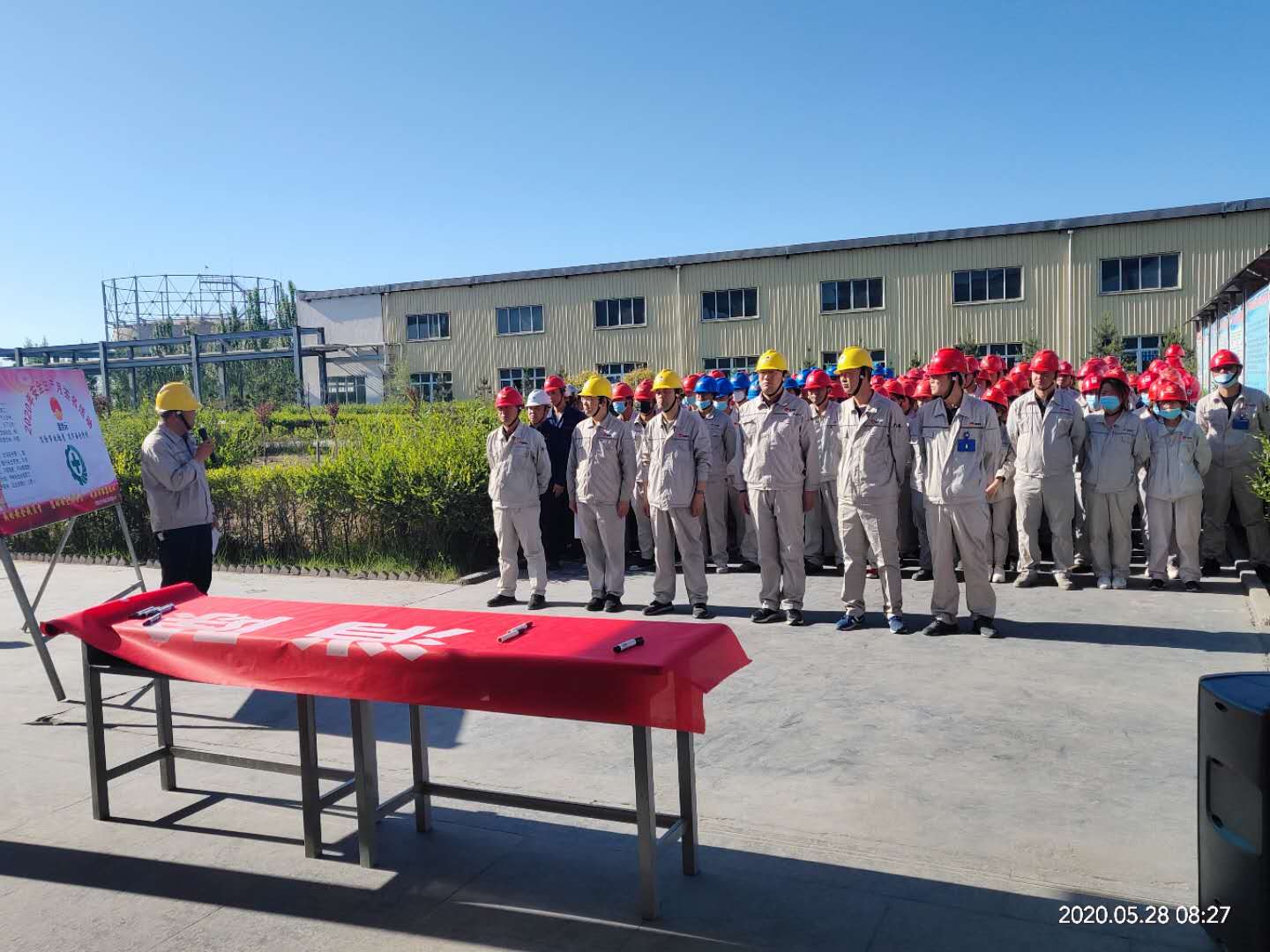 寧夏金昱元炔烴節能有限公司于2020年5月28日組織開展以“消除事故隱患、安筑牢安全防線”為主題的安全月宣誓簽名活動。