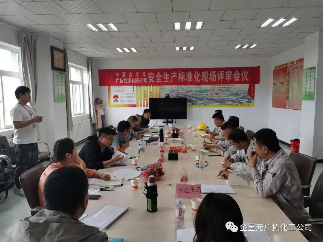 2020年8月20日下午,固原市應急管理局攜安全生產標準化達標考評組對我公司三級安全生產標準化創建工作進行評審,集團公司安環總監栗學信、固原片區副總經理湯洪冰、化工公司總經理賈存富陪同接受評審工作。