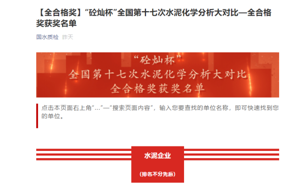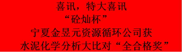 喜訊!寧夏金昱元資源循環公司榮獲“砼燦杯”全國第十七次水泥化學分析大比對“全合格獎”