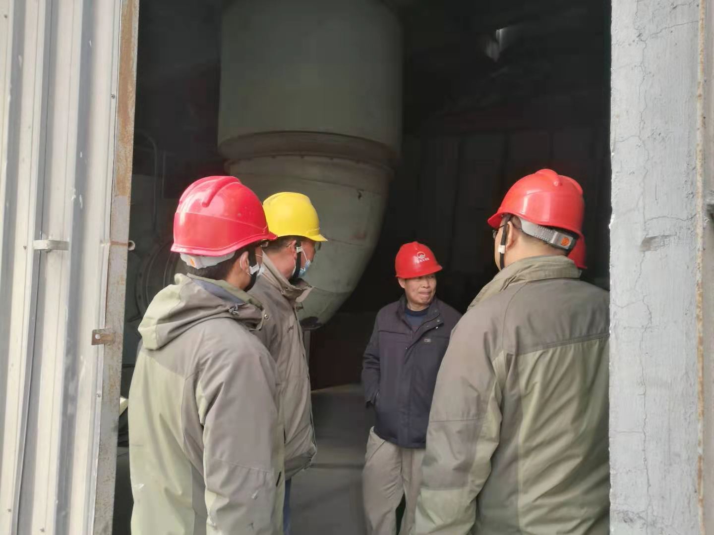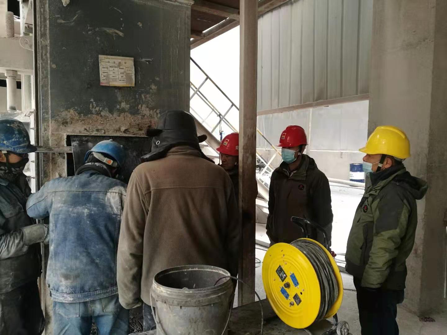 檢修作業(yè)全程跟蹤,一天一夜檢修下來,有睡在辦公室沒回家的,也有吃飯就在作業(yè)現(xiàn)場(chǎng)……比比皆是。總經(jīng)理吳紅衛(wèi)更是如此,一個(gè)作業(yè)一個(gè)作業(yè)現(xiàn)場(chǎng)轉(zhuǎn)上轉(zhuǎn)下,從2026提升機(jī)作業(yè)點(diǎn)到回轉(zhuǎn)窯主傳減速機(jī),再到篦冷機(jī)、煤磨、烘干破、預(yù)熱器、2301、2323、2401提升機(jī)以及高溫風(fēng)機(jī)、回轉(zhuǎn)窯窯內(nèi)及燃燒器檢修現(xiàn)場(chǎng),指導(dǎo),建議,一直值守在現(xiàn)場(chǎng),忙著跟工人們同時(shí)收工,一整晚都未歸宿就寢室。工人們,裝置長(zhǎng)擔(dān)心他的身體,時(shí)常提醒讓他回去休息一下,喝口水,而他放心、安慰大家說,“我和大家一樣的心情,早完工,產(chǎn)量就能早生產(chǎn)一點(diǎn),我們后續(xù)生產(chǎn)就能輕松一點(diǎn),大家加油”。一直以來,他和這個(gè)班子成員、工人們一起頂著嚴(yán)寒,一直堅(jiān)守在現(xiàn)場(chǎng)安全履職和協(xié)調(diào)把控檢修進(jìn)度,不厭其煩的一次次的詳細(xì)交底,直到一項(xiàng)一項(xiàng)設(shè)備檢修更換完畢。