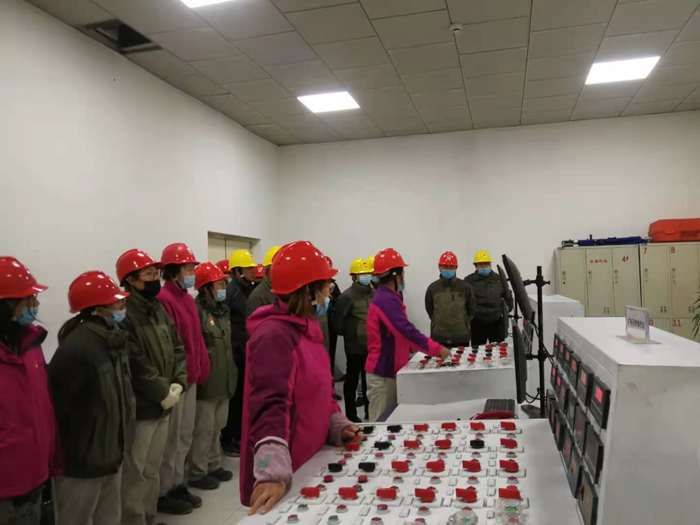1月27日早上,公司各級領導齊聚配電操作室,專業組現場落實設備完好情況。所有配電員聚在一起對開車方案中配電操作過程中的電流、電極等關鍵數據進行確認和記錄。公司保衛科消防隊按時間節點到達現場為開爐送電做好后勤消防保障。各級管理人員按照檢查確認表對電爐變壓器送電前進行安全檢查確認。操作室內所有人員緊盯著現場的攝像頭等待現場確認完畢上級下達送電指令的那一刻。