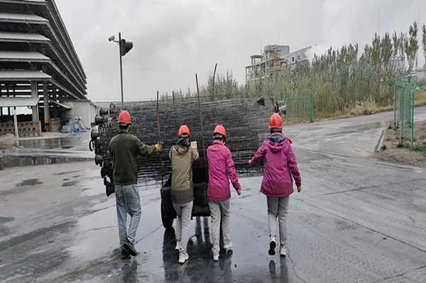 細雨中,早到的操作工將成品庫西側的所有舊龍骨清理至機修廠房前面空地處,一千多條龍骨,在他們在小小的板車上一車一車的拉運完,防砸鞋和褲管都已濕透,但看著清理完整齊的現場,所有的辛苦頓時煙消云散,掛滿灰塵的臉上洋溢出笑容。