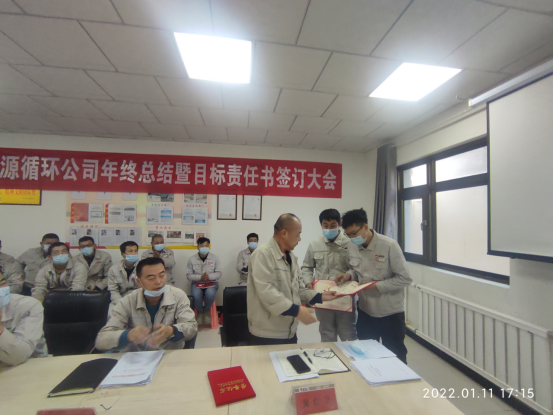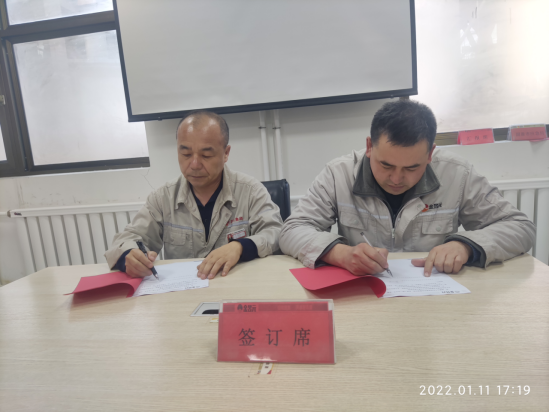 隨著會議議程的進行,公司總經理與副總經理、各單位負責人及副總經理與分管單位、職能主管科室與專業之間簽訂了“安全環保”與“經營管理”目標責任書。