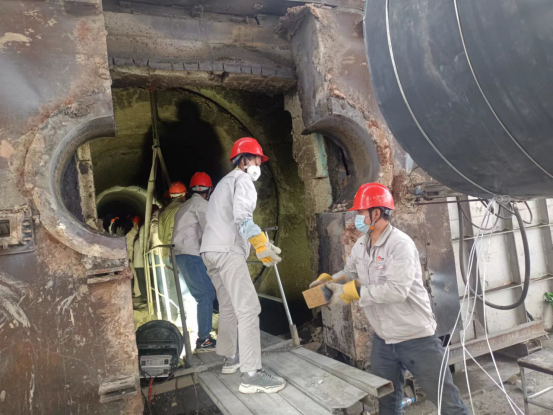 4月8日8:30—23:00分,在一片緊張有序的指揮中,展開了爭分奪秒的窯磚挖補工作。這里有公司領導、職能科室、質檢科及生產裝置全體員工。在現場,他們齊心協力、同舟共濟、相互打壓加氣,每一塊磚凝結著每一位員工心血。直至深夜,每個人堅持工作的最后一刻,從他們的表情中,可以看出,那種屏住呼吸、動作標準、目光堅定,無不詮釋著對工作的履職盡責。