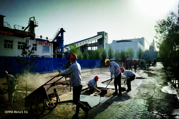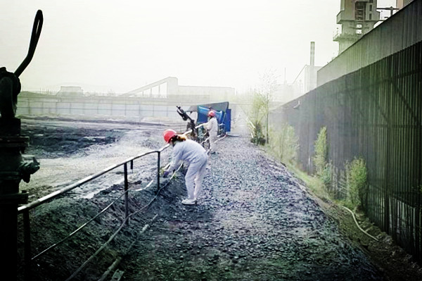 下白班的同事們主動拿起刷子給渣場久經風吹日曬失色的護欄重添上新的色彩,我們的職工用自己笨拙的手創造出了我們美麗的家園。