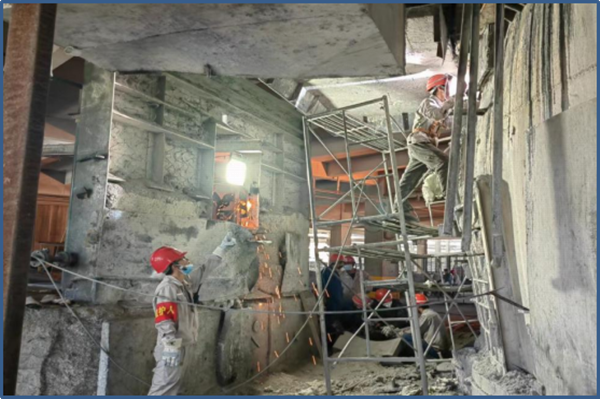 在爐壁修復(fù)現(xiàn)場(chǎng),制作好的爐壁鐵、爐門(mén)、腳手架已被電石爐輻射熱炙烤的滾燙,檢修人員的手套阻隔不了那股熱流,他們不顧滾燙,依然堅(jiān)持焊接、安裝,確保每一條焊縫安全牢靠。安全帽下每一張年輕稚嫩的臉龐,被汗水浸濕了無(wú)數(shù)遍,取下手套的手指上被汗水浸泡的發(fā)白,面對(duì)公司及裝置領(lǐng)導(dǎo)的關(guān)心,他們依然打趣的說(shuō)到:“還好,不辛苦,干活五分鐘,流汗兩小時(shí),我與烤肉的距離只差一撮孜然”。是的,在這種高溫下,我們的工人就是這么牛,這么樂(lè)觀,這么積極向上。他們拿出逢山開(kāi)路,遇水架橋的闖勁,直面困難,迎難而上的干勁,百折不撓,馳而不息的韌勁,全力推動(dòng)檢修工作順利完成。