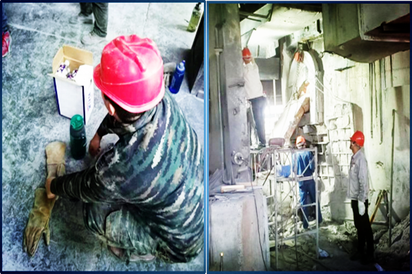 時(shí)光如白駒過(guò)隙,1#、2#電石爐已安全穩(wěn)定生產(chǎn)六年有余,爐內(nèi)碳磚、耐火磚燒損嚴(yán)重,已達(dá)到大修周期,加之五、六月份大量使用佳成礦山石料,爐內(nèi)鐵水多,四臺(tái)電石爐爐眼附近耐火磚、碳磚不同程度燒損,尤其是1#爐3#眼、2#爐3#眼,爐眼上方爐壁被鐵水擊穿,出爐工作不能正常進(jìn)行,嚴(yán)重影響到電石爐的安全穩(wěn)定運(yùn)行;為盡快消除制約安全生產(chǎn)穩(wěn)定運(yùn)行的隱患問(wèn)題,為電石爐穩(wěn)定運(yùn)行提供強(qiáng)有力的保障,在公司統(tǒng)一部署下,自五月底開(kāi)始,集各裝置維修工力量由電石一裝置組織對(duì)兩臺(tái)爐爐壁進(jìn)行修復(fù)。