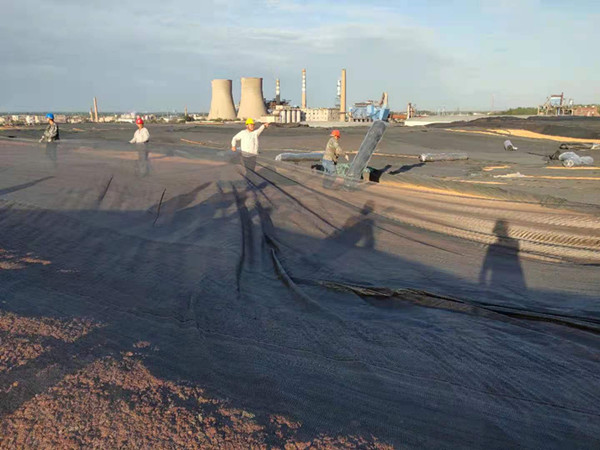 由于公司原料堆場原料使用造成的部分土地裸露,造成揚塵污染,治風(fēng)沙、阻揚塵這項工作迫在眉睫;八月秋深,狂風(fēng)怒號,風(fēng)卷走了手中的防塵網(wǎng),天空烏云黑的像墨天色陰沉迷蒙,空曠的型砂、粘土堆場風(fēng)呼呼的吹著,任憑它的怎么肆虐卻擊退不了職工們工作的熱情,瞧他們單膝蓋在潮濕的泥土上細(xì)心的用鐵絲鏈接著每個接口。男職工展現(xiàn)大力水手的魅力,兩人一卷,一人一卷有序的擺放在裸露的土地中央,女同事也不甘示弱拆開整卷防塵網(wǎng)整齊的鋪在砂石頂部,大家喊著整齊的口號,經(jīng)過一早上不懈努力,就將整個原料場地覆蓋完畢。抑制滿天風(fēng)沙的場景,也保存了大量的原料。