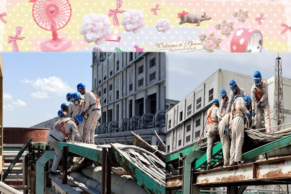 高溫天氣,尤其到了下午兩三點,太陽像火爐一樣燒到正旺的時候,大家暴露在烈陽下,這個時候最容易中暑,提醒作業人員及時補充水分,輪換休息,保證體力跟得上工作節奏。因為先要拆除掉銹蝕掉的橋架,鋸弓鋸,撬杠敲打,用繩子拽,還要注意橋架的隨時掉落,高空作業精神緊繃,每個人都是汗流浹背。腐蝕掉的橋架拆除后,新的橋架不斷調整安裝位置,再用螺絲緊固,就這樣,電纜橋架被一節節拆除又被一節節安裝上,他們頭頂的藍色安全帽在陽光下來回移動著,就像一串跳躍著的藍色音符。
