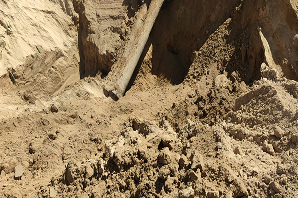 因晚上下大雨,夜間照明條件差,且呲漏處土質存在塌方風險,不具備堵漏條件。公司在第一時間商討制定解決方案,及時分配下發工作任務,立即聯系工程車輛和堵漏公司,連夜趕制堵漏磨具,為淡水管道搶修工作做好工作準備。25日凌晨4時,鹽硝裝置回收淡水,并安排維修人員、堵漏公司及搶修車輛進入現場。