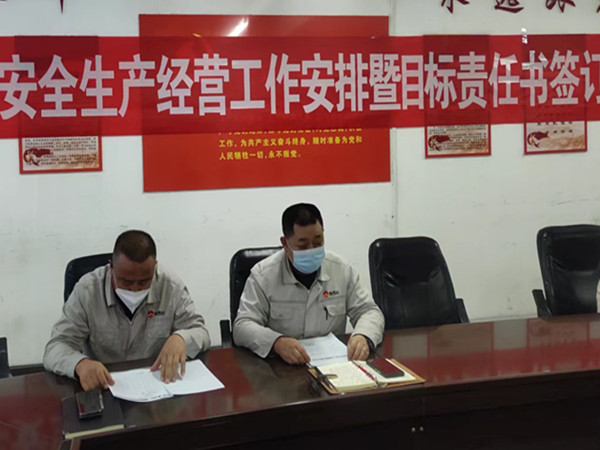 之后公司總經理與安全總監簽訂安全環保目標責任書;與主管副總經理、安環科、生產科、各裝置長簽訂安全環保目標責任書書、生產經營目標責任書與支部書記簽訂黨建及精神文明目標責任書。