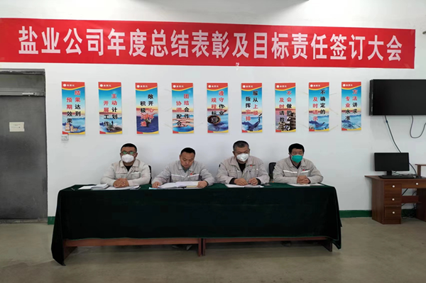 為全面總結、分析2022年度生產經營管理各項工作,總結反思工作中的得失,激勵各級人員認真履行崗位職責,為實現年度目標任務奮進前行,順利實現2023年度安全環保和生產經營目標任務。鹽業公司于2023 年 1月 4日 下午14時30分,組織召開了2022年度生產經營總結會暨先進表彰大會。
