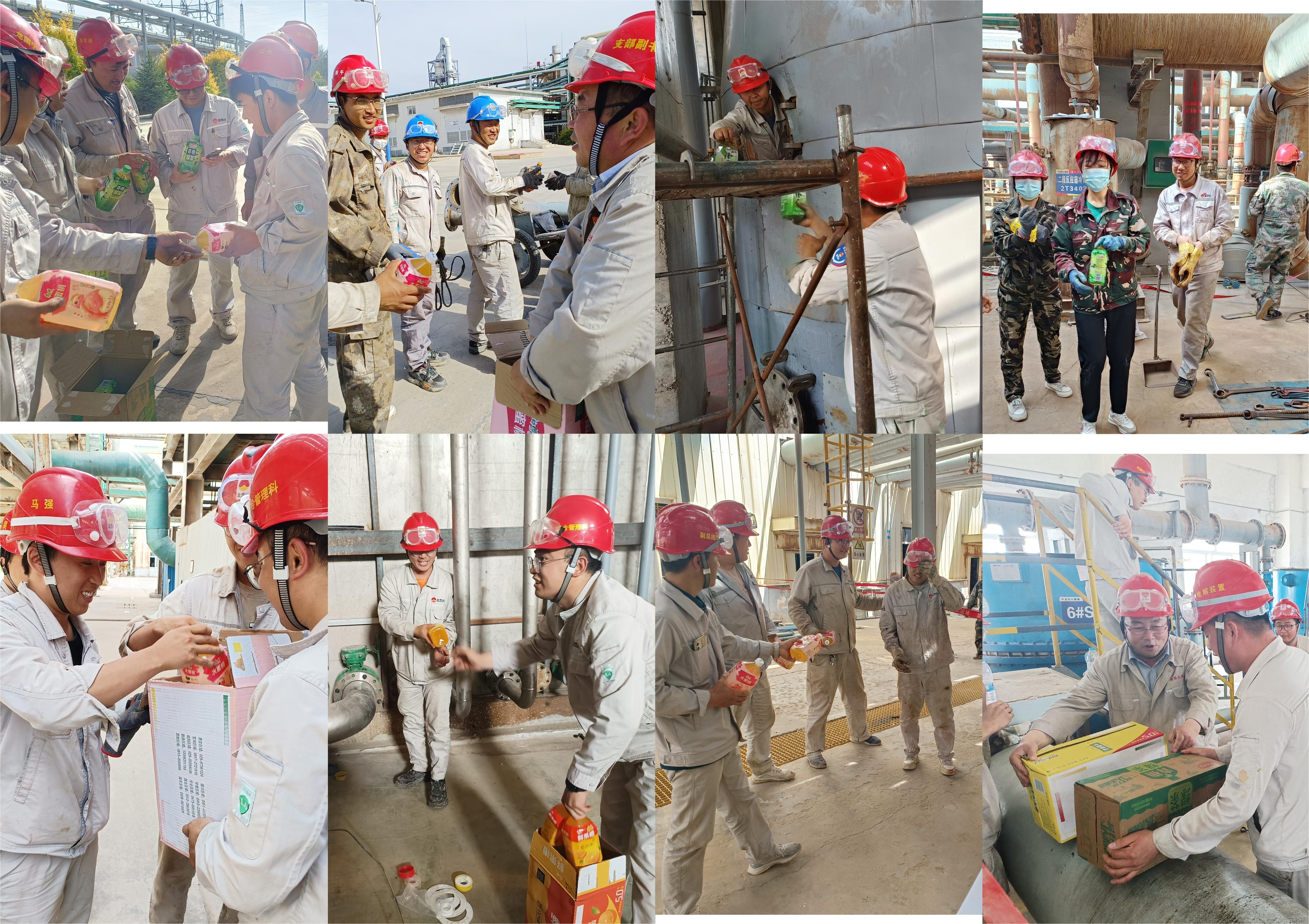 他們午頂艷陽,爬現場管廊、鉆氯乙烯高低塔、入固堿熔鹽爐、拆氯化氫合成爐、洗乙炔發生器管線、清聚合流化床、換電解槽離子膜、效儀表設備、查電氣線路,他們無所不能,他們一氣呵成,他們夜以繼日的奮戰在工作檢修現場。現場環境較為惡劣,已是夏天,工作在一線的他們早已是汗流浹背,各類大瓶止渴飲料的到來,迎來一陣一陣的歡呼。在檢修過程中,他們每天都能接受到新的知識來充實自己,為系統平穩運行保駕護航,為公司產品質量創造新的高度。此次檢修時間長、項目較多、任務繁重,但是大家從來沒有怨言,都主動加班加點,放棄了下班陪伴父母孩子的時間,來投身到這場沒有硝煙的戰火當中,他們勤勉盡力、潛心檢修、默默堅守,現場每個角落都是他們艱苦奮斗的身影。