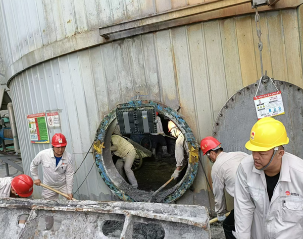 人在專注干一件事的時候是最帥氣的,盡管他們身上滿是油污,也掩蓋不住他們認真、擔當和富有責任感的品質。他們把每一次檢修都當成一次全新的挑戰,把每一次檢修都當做一次經驗的積累,一張張布滿油污、灰塵的面孔,綻放出最為清澈和動容的笑容。你看,脫硫塔檢修現場,他們在滿是泥水的脫硫塔內來來回回奔跑了無數次,泥污沾滿了全身每一個地方,不知是汗水還是泥水打濕了衣服。他們干活不分你我、不惜力氣、相互配合,安全高效地完成了料液清理工作,為脫硫塔消漏、防腐做好了準備工作。