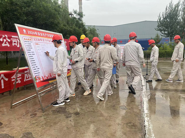 2024年5月29日上午,興昊永勝鹽業(yè)公司組織開(kāi)展了“安全生產(chǎn)月”啟動(dòng)儀式。啟動(dòng)儀式上,各裝置長(zhǎng)和勞務(wù)外包負(fù)責(zé)人分別作了表態(tài)發(fā)言,主管副經(jīng)理帶領(lǐng)大家做了安全宣誓,總經(jīng)理尚繼榮同志帶領(lǐng)每一位員工鄭重的在安全承諾簽字版上寫(xiě)下了自己姓名。各裝置長(zhǎng)和勞務(wù)外包負(fù)責(zé)人承諾:“他們會(huì)帶領(lǐng)部門(mén)員工,牢固樹(shù)立安全紅線意識(shí),認(rèn)真履職崗位職責(zé),嚴(yán)格遵守公司規(guī)章制度,深入排查治理各類(lèi)安全隱患,杜絕違章和安全生產(chǎn)事故發(fā)生”。