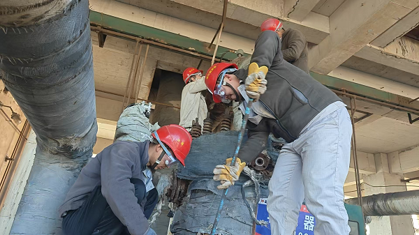 本次檢修任務繁重,但檢修人員卻干勁十足。他們有的拆卸螺栓,有的進行吊裝,有的開展焊接……他們配合默契,動作精準,工作井然有序。他們以勇于擔當的責任感和時不我待的使命感攻克難關,用實際行動勾勒出了一幅幅彰顯勞動之美的畫卷。