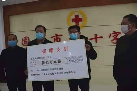 2月月5日,集團公司及所屬子公司向寧夏回族自治區紅十字會、吳忠市紅十字會、固原市紅十字會、固原市民間商會、青銅峽市慈善會共捐贈351萬元現金,為抗擊新冠病毒肺炎疫情提供支持。