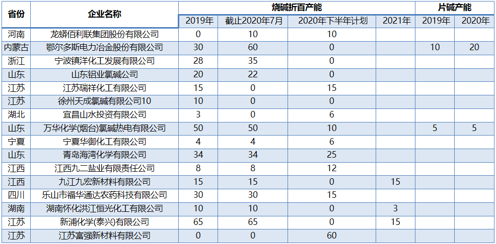由此可見,2020年全國總產(chǎn)能實現(xiàn)穩(wěn)步增長,但整體增速相比同期有所下降,受全球公共衛(wèi)生事件沖擊,燒堿下游需求表現(xiàn)不佳,整體行情不甚樂觀。出于整體需求和供需平衡考量,預(yù)計未來產(chǎn)能增速將有放緩表現(xiàn),具體發(fā)展變化還需關(guān)注后續(xù)全球公共衛(wèi)生事件處置情況及市場行情實時變化。