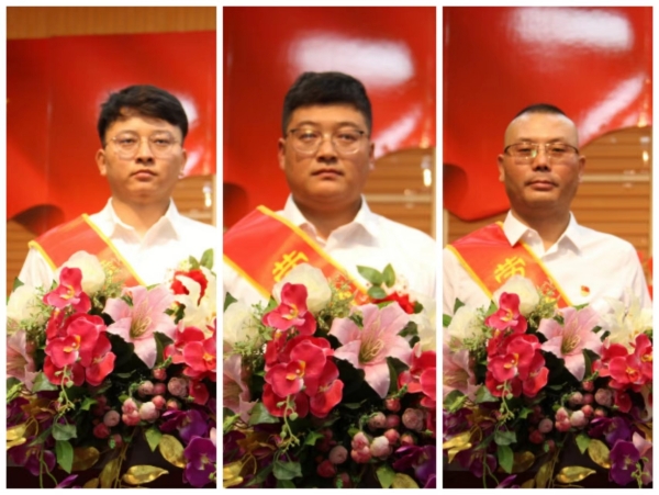 勞動模范:左:資源循環(huán)公司 席文童;中:廣拓能源公司 麻玉龍;右:炔烴節(jié)能公司 金學鋒