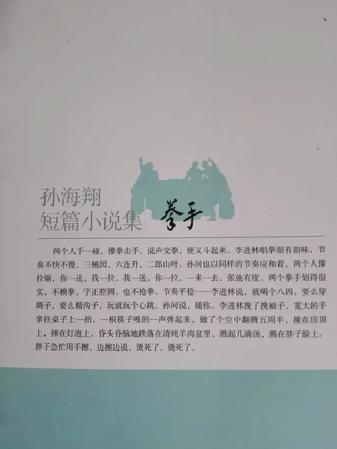 在文學日益式微的今天,仍有一些虔誠的信徒堅守在文化創作的金牧場。現供職于寧夏金昱元化工集團有限公司的孫海翔,二十年如一日始終在青銅峽市這片熱土上堅持著他的文學夢想。歷時半年,短篇小說集《拳手》終于出版。這是青銅峽市作家孫海翔出版的第一部書,共收入28篇短篇小說。