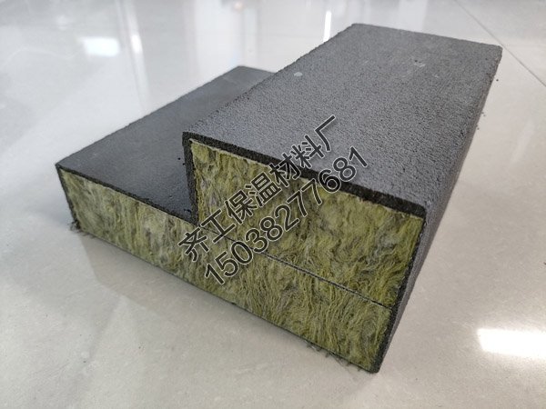 備料,按照尺寸要求切割裁剪符合容重要求以及規(guī)定尺寸的巖棉條,組合芯材外型尺寸較設(shè)計線條尺寸內(nèi)縮2mm;配制薄層巖棉條粘結(jié)劑,在組合豎絲巖棉條組成的芯材本體時,在各條之間用粘結(jié)劑薄層涂覆擠壓,待干燥后形成芯材本體。